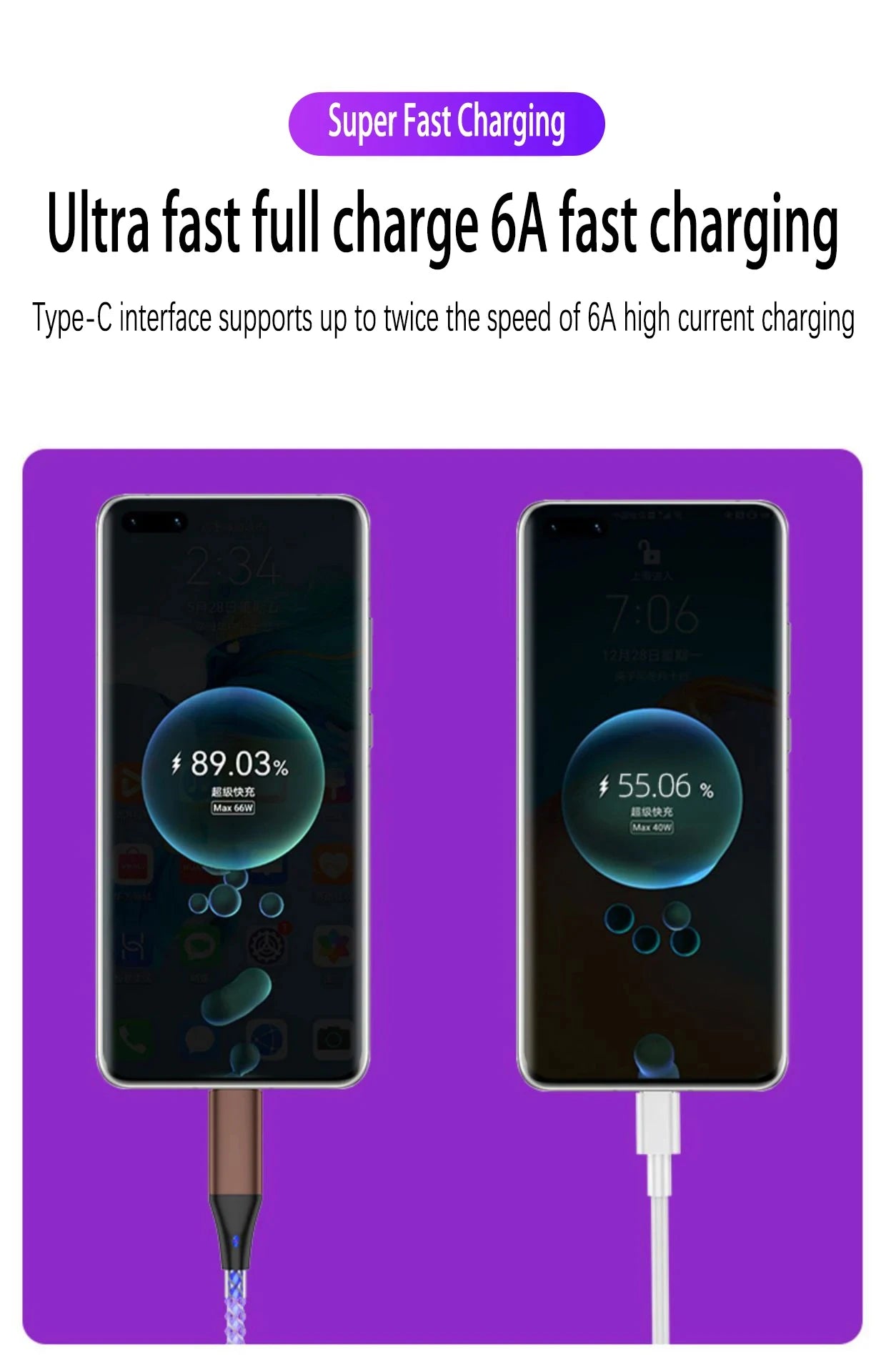 - To achieve 66W fast charging, use with a 66W charging head